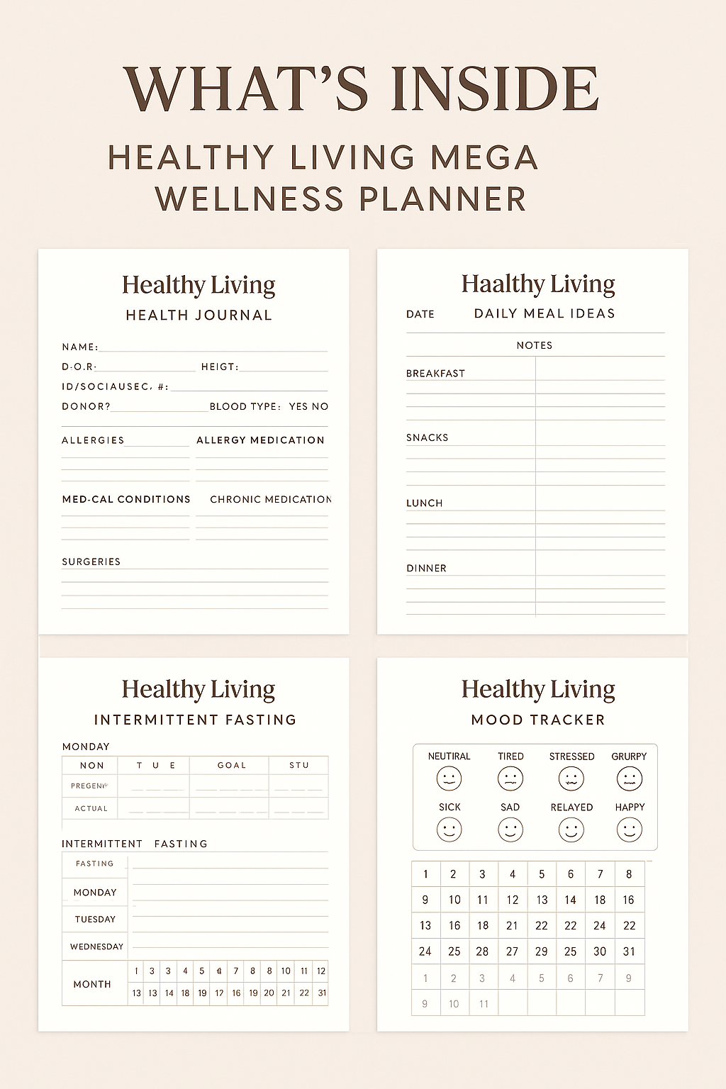 Our wellness planners and journals are available in printable PDF format, allowing you to download and print them immediately after purchase. This gives you the flexibility to print as many copies as you need and start your wellness journey right away. Some products may also be available in physical formats - check individual product pages for details.